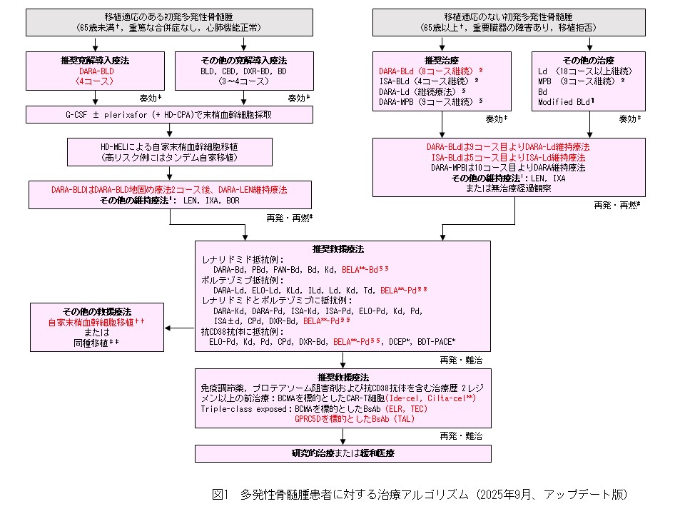 < 図1:多発性骨髄腫患者に対する治療アルゴリズム>2025年9月アップデート図